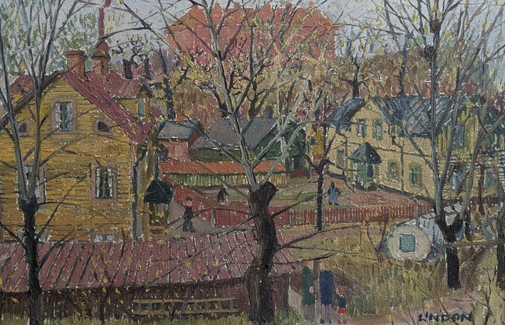 Kurt Lindon (1910-86) 'Village through Autumn Trees'